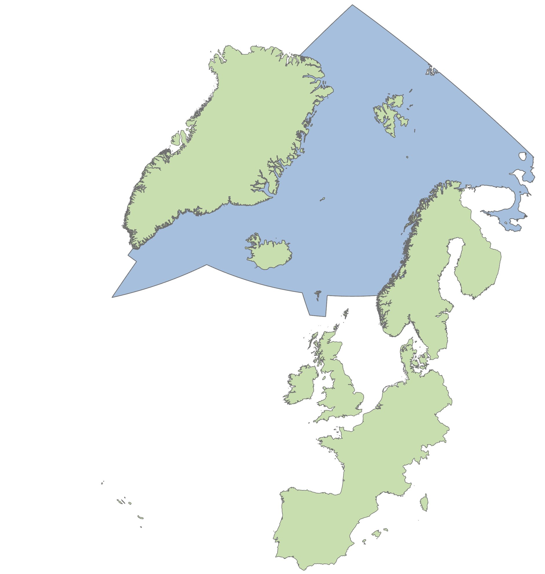 Figure 1: Distribution of the Western Palearctic Steller’s eider Polysticta stelleri population. OSPAR regions are denoted with white text. The grey square indicates a potential breeding outside the regular breeding range (EBBA2).