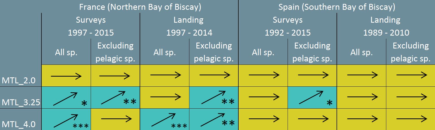 Table 1: Trends in changes to MTL in the Bay of Biscay