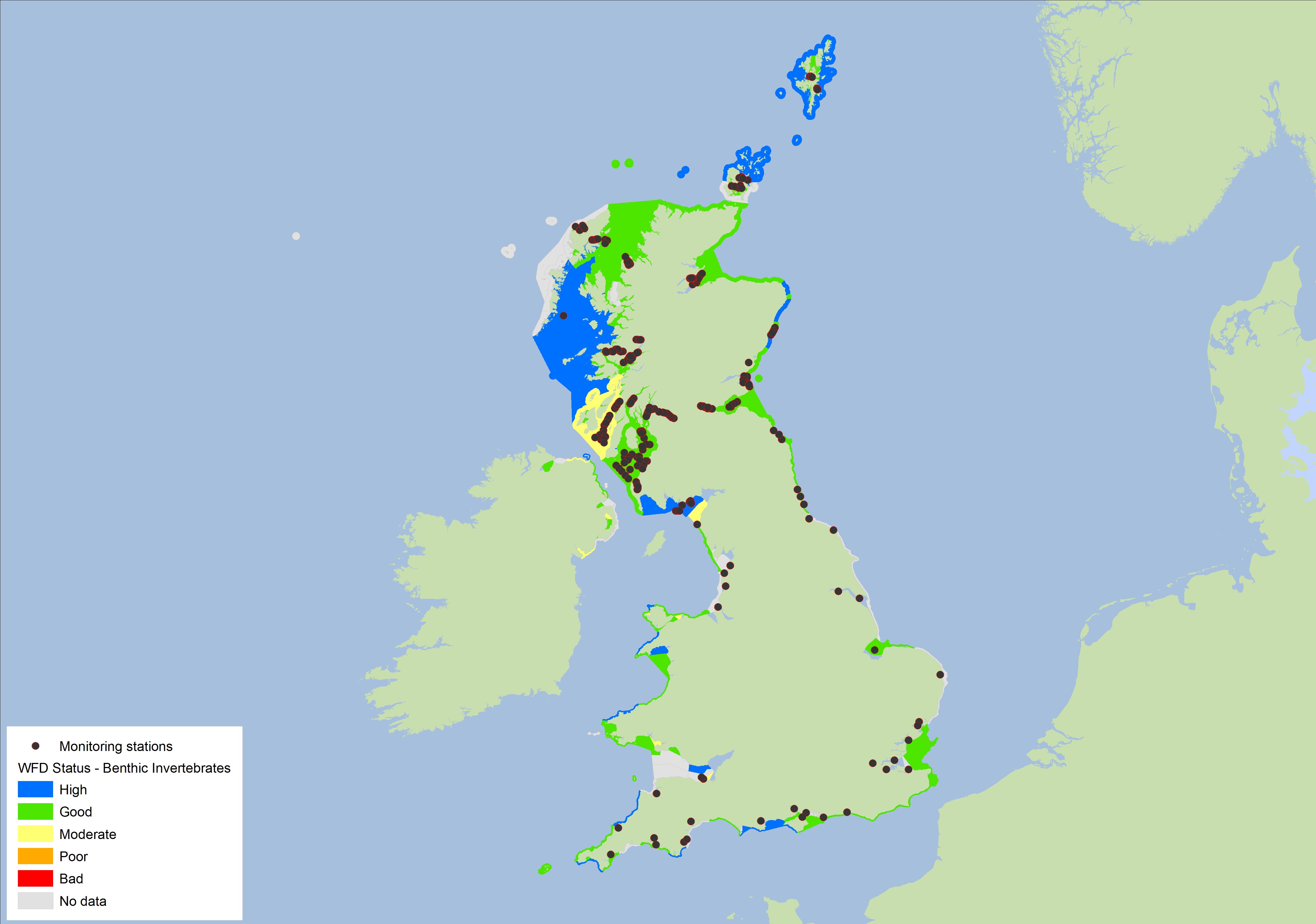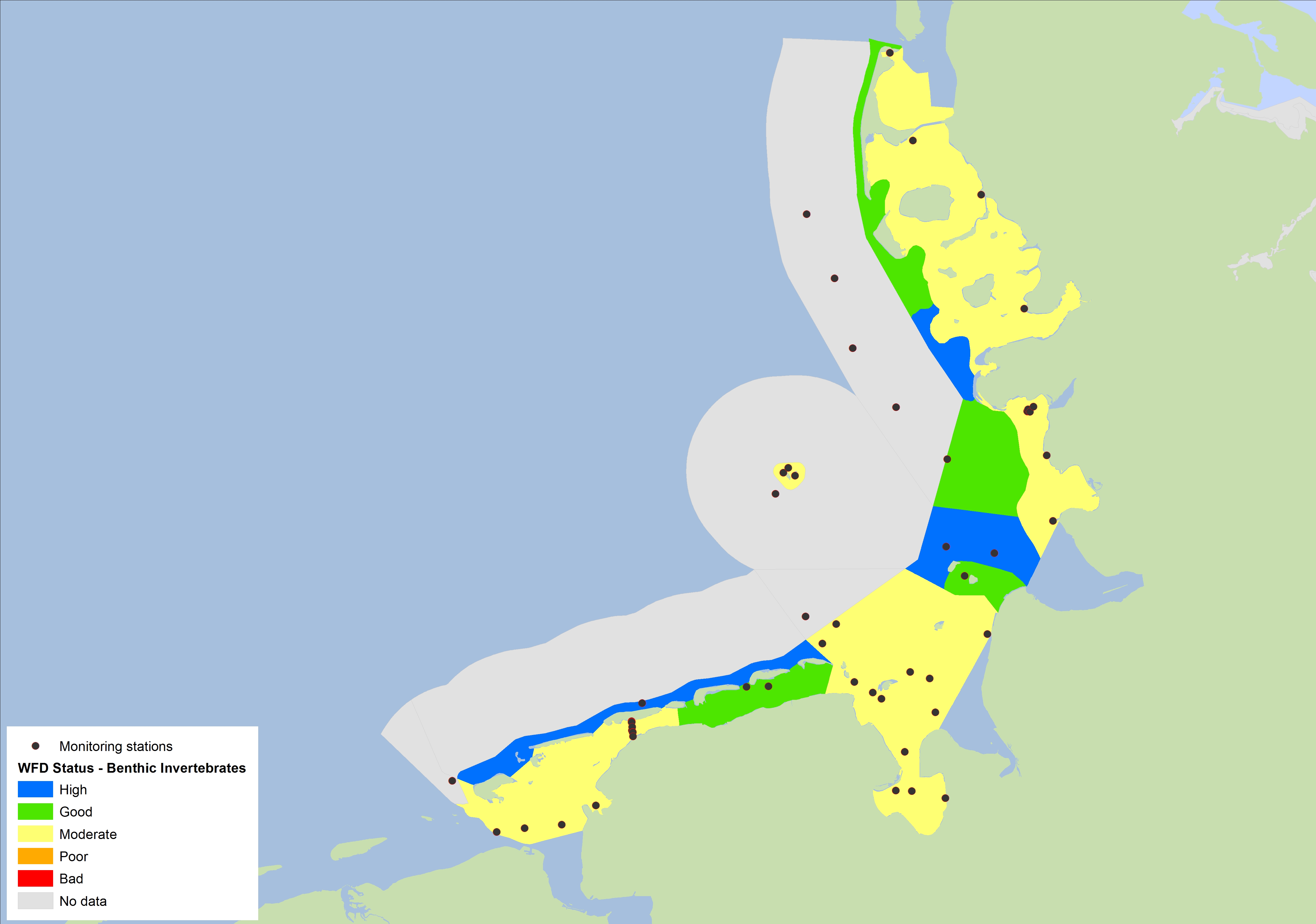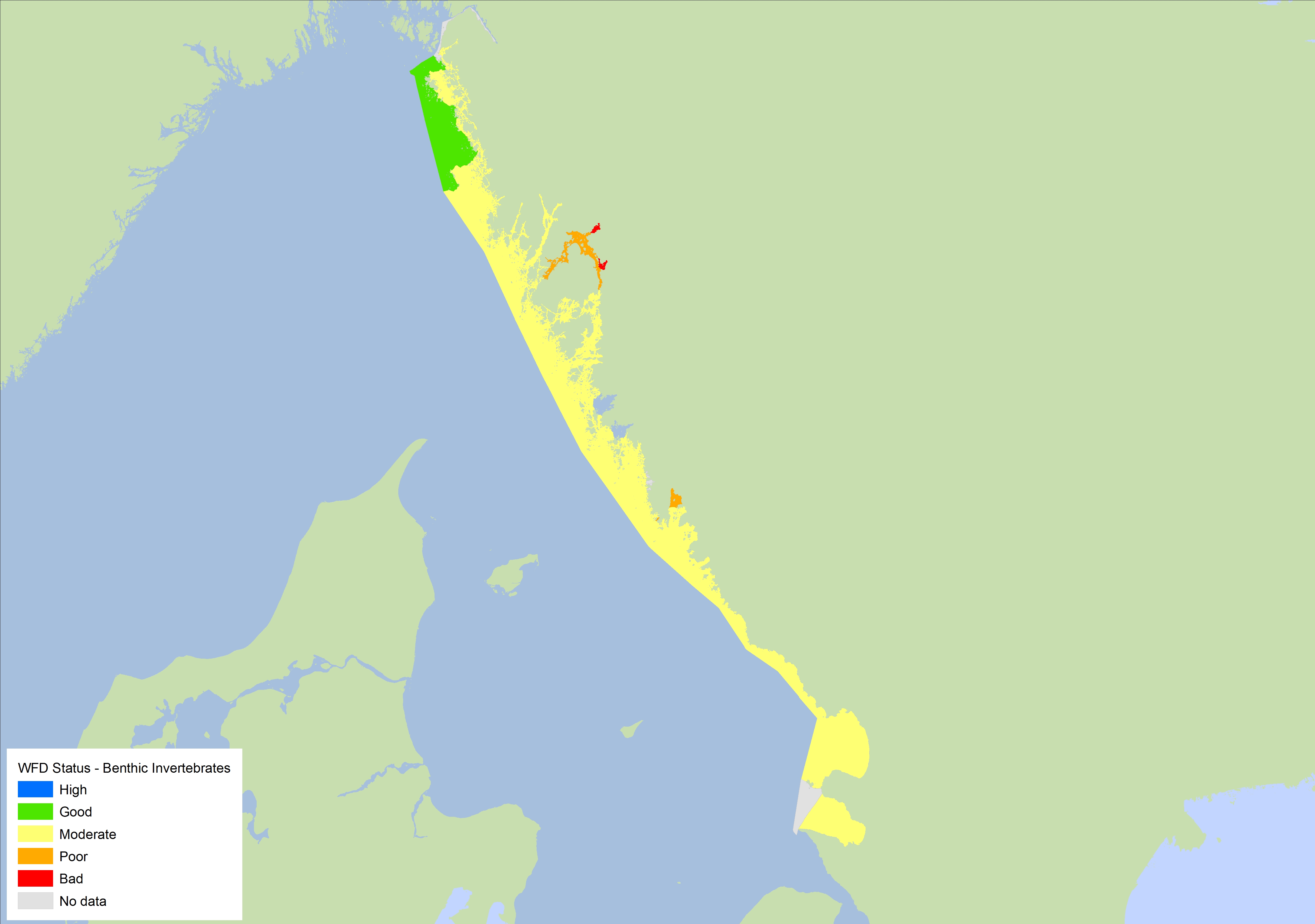 The results provide only a partial view of the status of benthic invertebrates, macroalgae and angiosperms in response to nutrient and / or organic enrichment given the limitations in data coverage or availability. Trends in the condition of benthic habitat communities are not available, however with further WFD reporting these should be assessed in future.