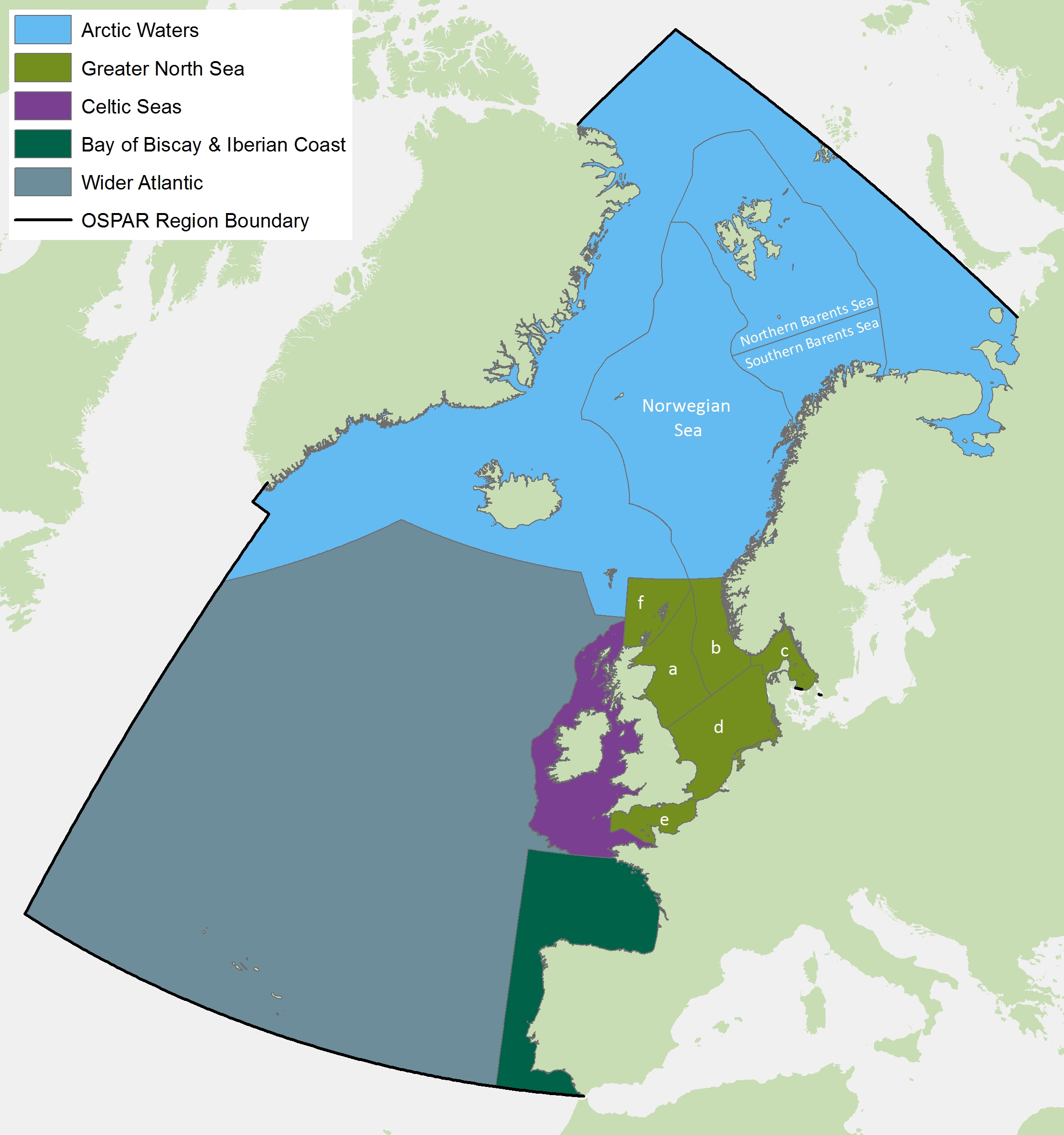 This Indicator Assessment does not include the Bay of Biscay and Iberian Coast or the Wider Atlantic, because data were not available for France, Spain and Portugal. The assessment for Arctic Waters was confined to Norwegian coasts (including High-Arctic islands) owing to a wider lack of data; other OSPAR Countries in the Arctic are encouraged to make data available for future assessments. In the Greater North Sea, areas outside the UK, Norway, the Netherlands and Belgium were not assessed due to lack of data. Data collected since 2012 in the Danish and German Wadden Sea were not available and these areas were therefore not included in the assessment.