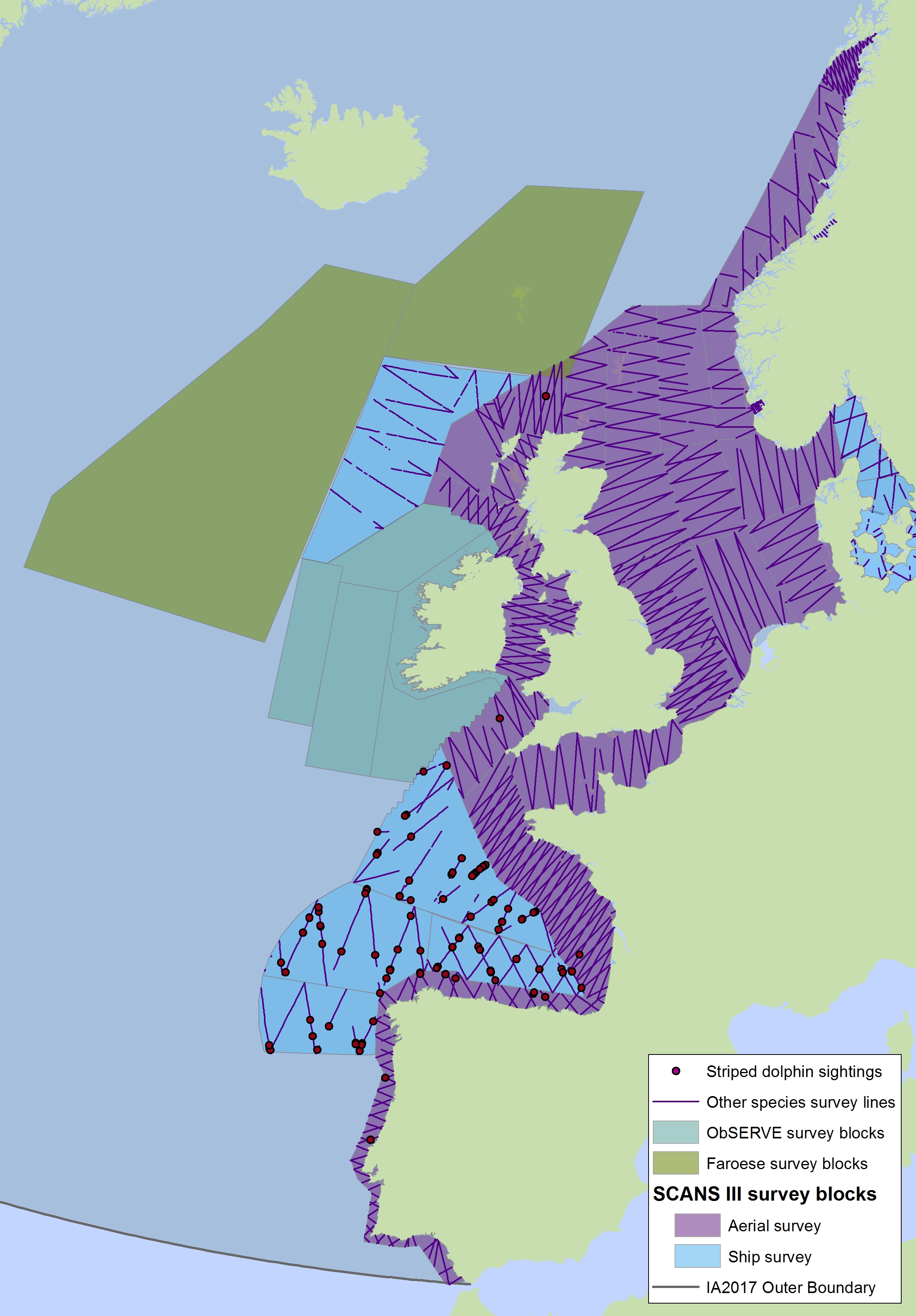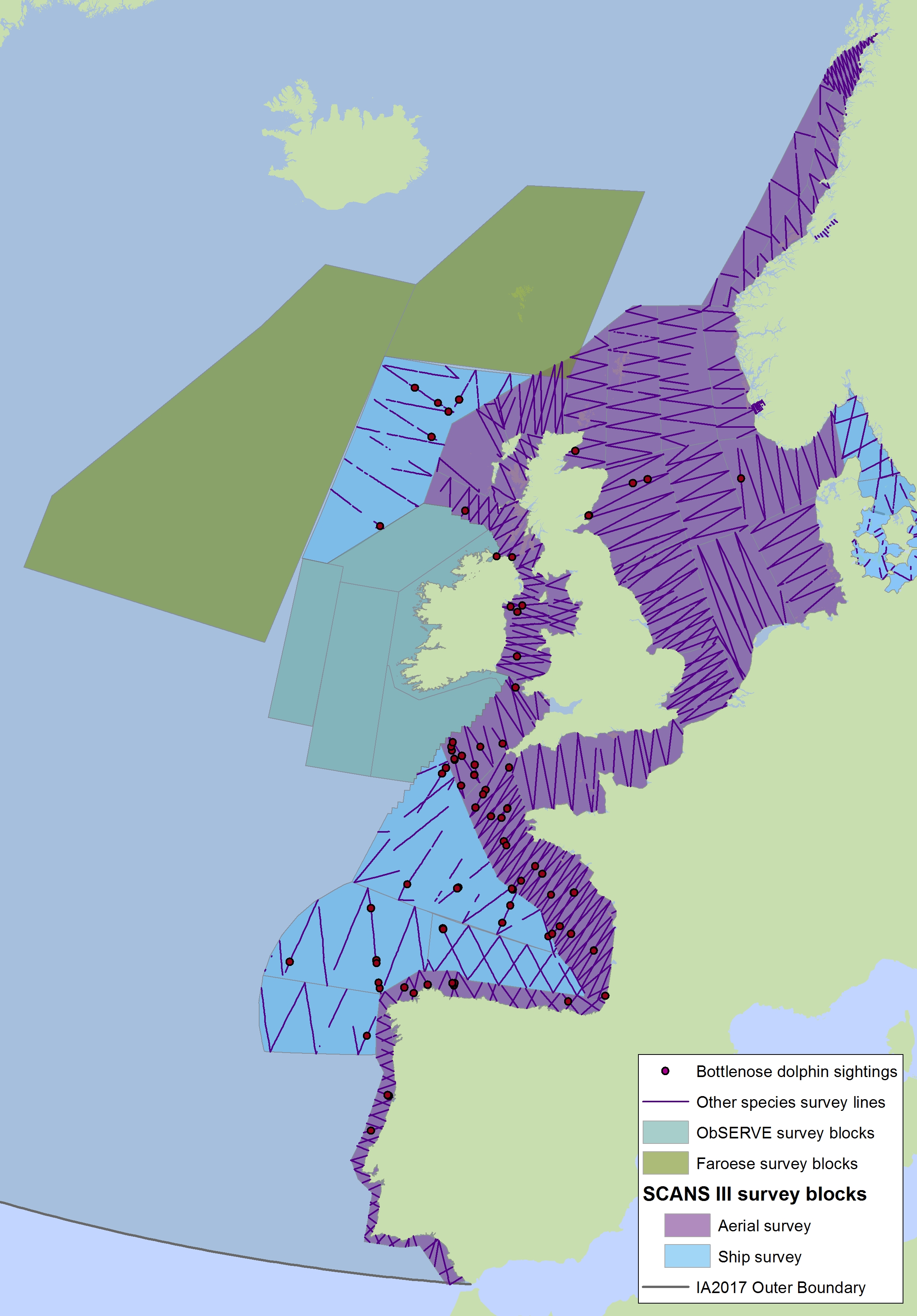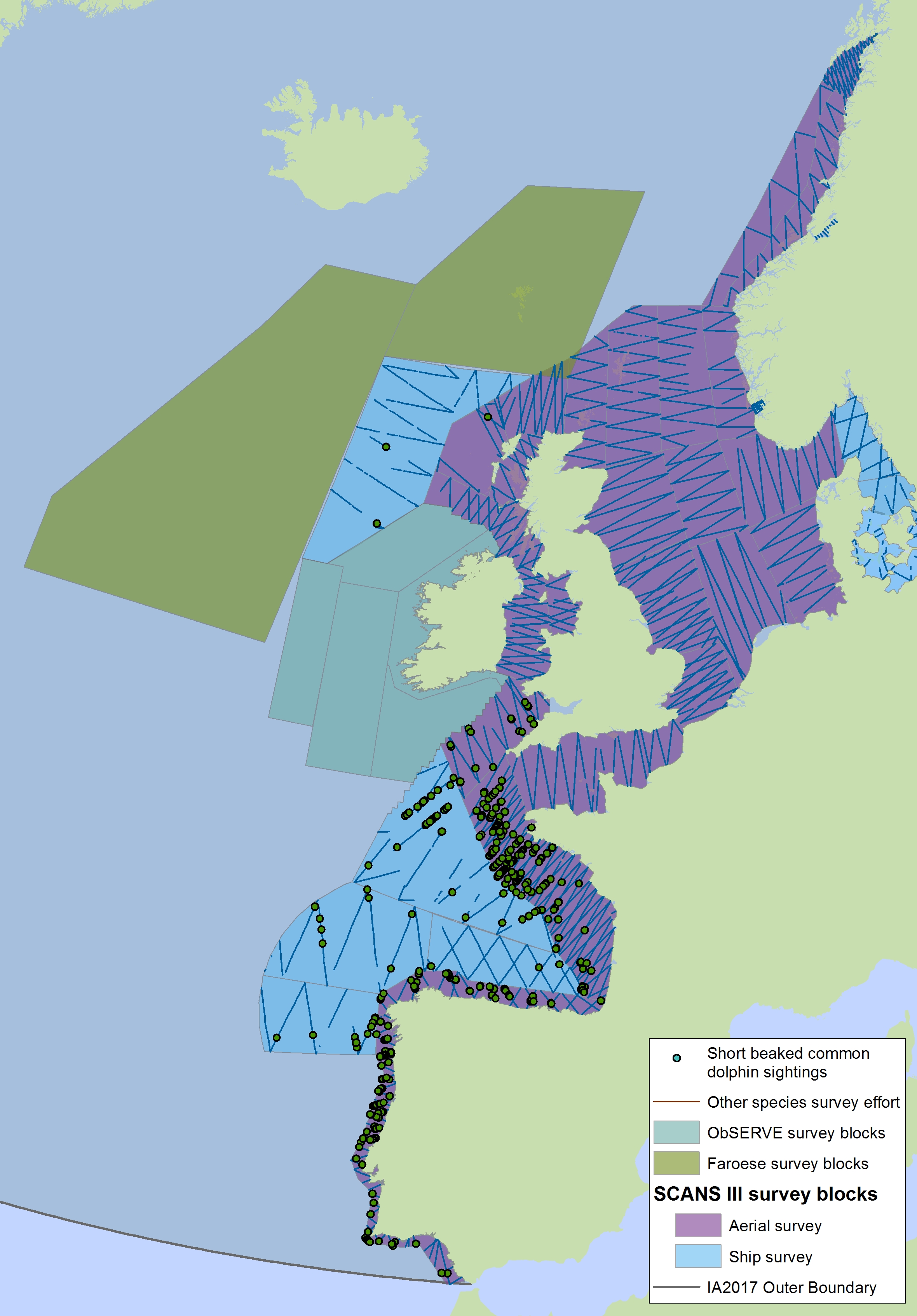 Hammond, P.S. et al., 2017. Estimates of cetacean abundance in European Atlantic waters in summer 2016 from the SCANS-III aerial and shipboard surveys. Report to ICES Working Group on Marine Mammal Ecology. 26pp.