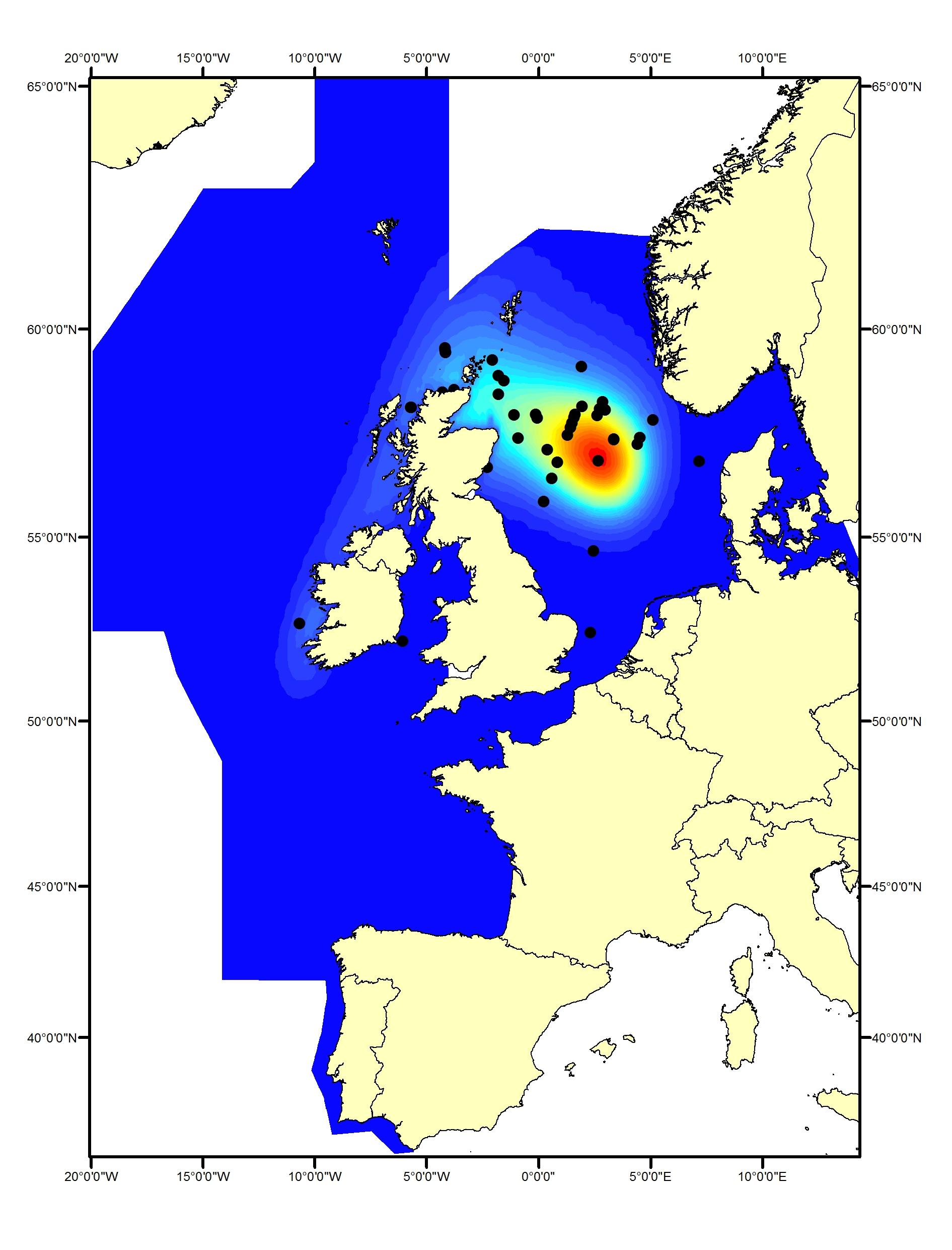 Where possible, information on species distribution has been obtained from modelled density surfaces fitted to data collected during large-scale surveys (e.g. Gilles et al., 2016; Rogan et al., 2017). Where this was not possible, distribution was derived from the distribution of animals seen on these and other surveys.