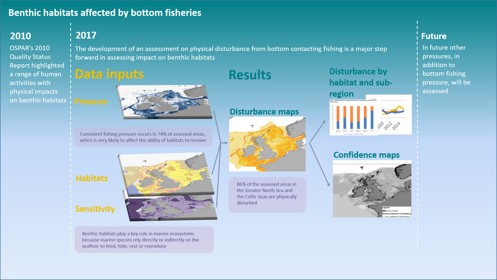 The last OSPAR Quality Status Report (QSR 2010) highlighted a range of human activities with physical impacts on benthic habitats. Focus was given to the impact of benthic fishing on seabed habitats and associated benthic communities, especially on the continental shelf and in vulnerable marine ecosystems in the deep seas.