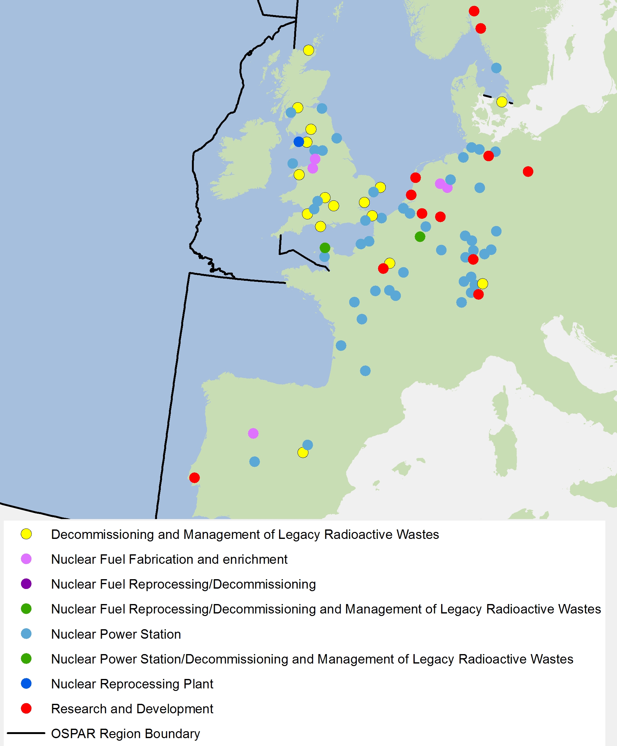 Figure 1: Nuclear facilities that discharge into the OSPAR Maritime Area