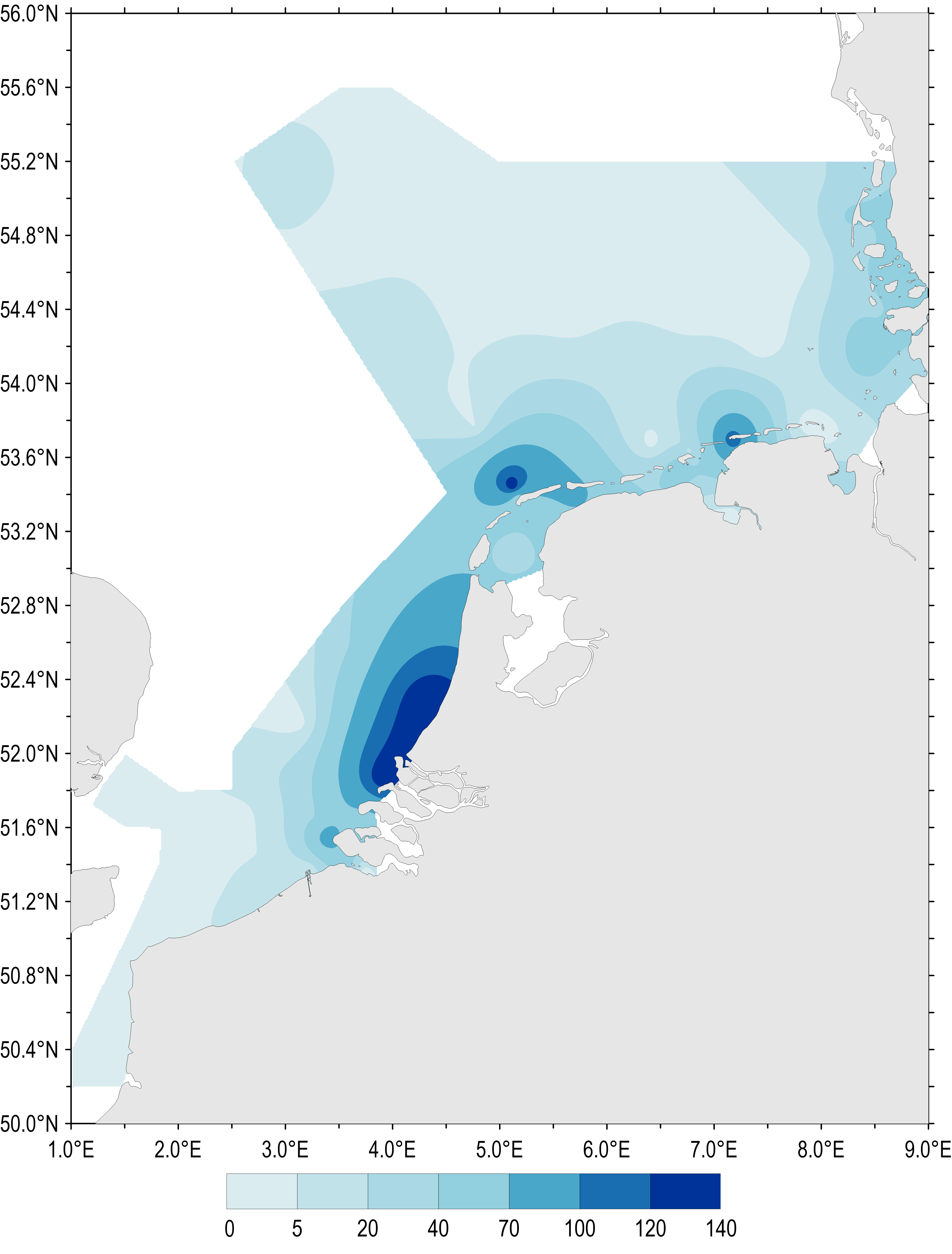 The spatial distribution of maximum Phaeocystis concentrations sampled during spring and summer (April–August) 1990–2014 is shown in Figure 2. Phaeocystis abundance during this period was high along the Dutch and German south-east coast of the North Sea. Maximum abundances show regional ‘hot spots’ where locally Phaeocystis cell concentrations can exceed 100 million cells per litre.