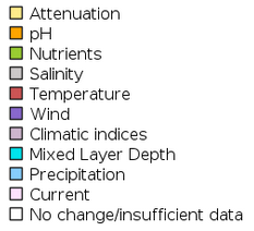 Being at the bottom of the trophic network, plankton is highly sensitive to their changing environment. In this context, there is a need to improve the linkage with relevant eutrophication indicators from OSPAR’s Hazardous Substances and Eutrophication Committee (HASEC) such as the nutrient inputs indicator . Future investigations will help to address the importance of nutrient inputs within the sub-division of the different OSPAR Regions. Furthermore, it is important to establish better coherence between the PH2 indicator and the chlorophyll-a concentration indicator across multiple criteria: data collection (similar data should be used to maintain consistency in results), spatial resolution (similar spatial resolution should be maintained across related indicators), and temporal resolution (consistency should be maintained across related indicators in terms of whether they examine year-round time-series, or productive months only).