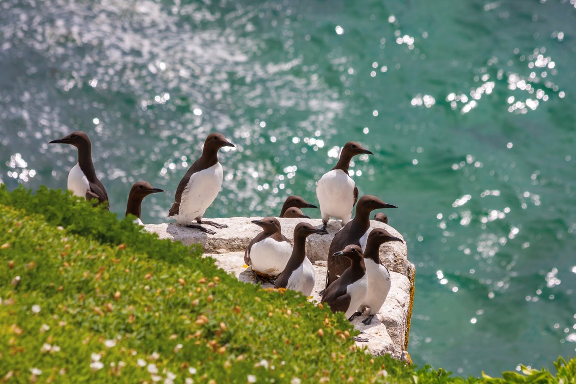 The marine birds in the North-East Atlantic include some that spend the majority of their lives at sea (petrels and shearwaters, gannets and cormorants, skuas, gulls, terns and auks) and waterbirds that mostly inhabit intertidal areas or inshore areas close by (waders, ducks, geese, swans, grebes and divers).