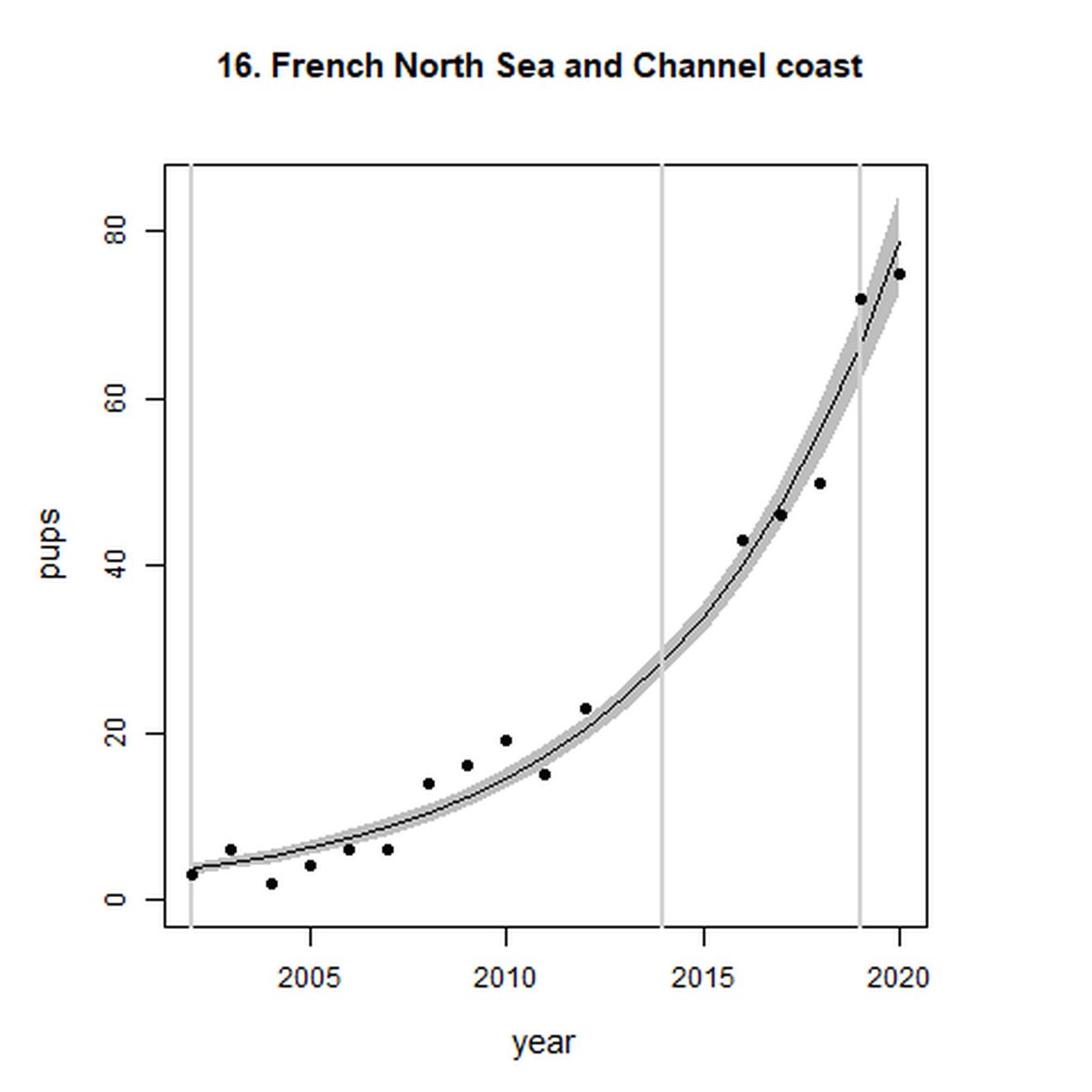 | 16 | French North Sea & Channel Coast | peak count | 2002 | 2020 | 16 | 75 | 1667 (1307, 2135) | 133 (118, 149) |