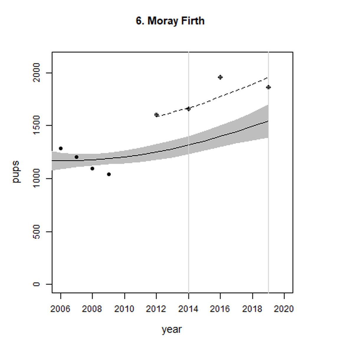 Figure 2: Assessment of recent change in grey seal pup production (2014–2019)