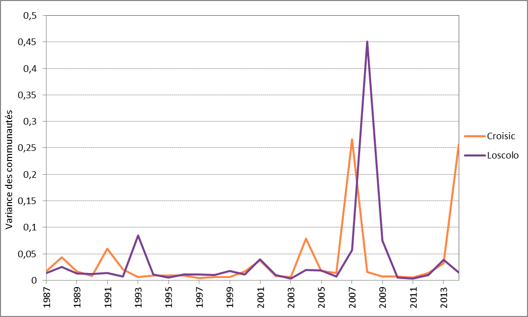 Figure 4: Variance moyenne annuelle des communautés phytoplanctoniques pour Ouest Loscolo et Le Croisic