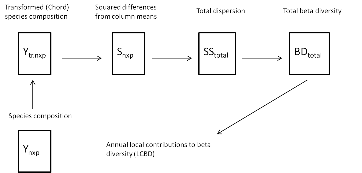 Legendre, P. and De Cáceres, M. (2013) Beta diversity as the variance of community data: dissimilarity coefficients and partitioning. Ecology Letters 16: 951-963.