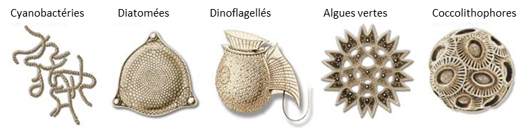 Figure 1: Cinq exemples de groupes phytoplanctoniques