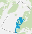 Figure 2: Zones écohydrodynamiques (EHD) dans la mer du Nord au sens large, les mers Celtiques, et le golfe de Gascogne et la côte ibérique
