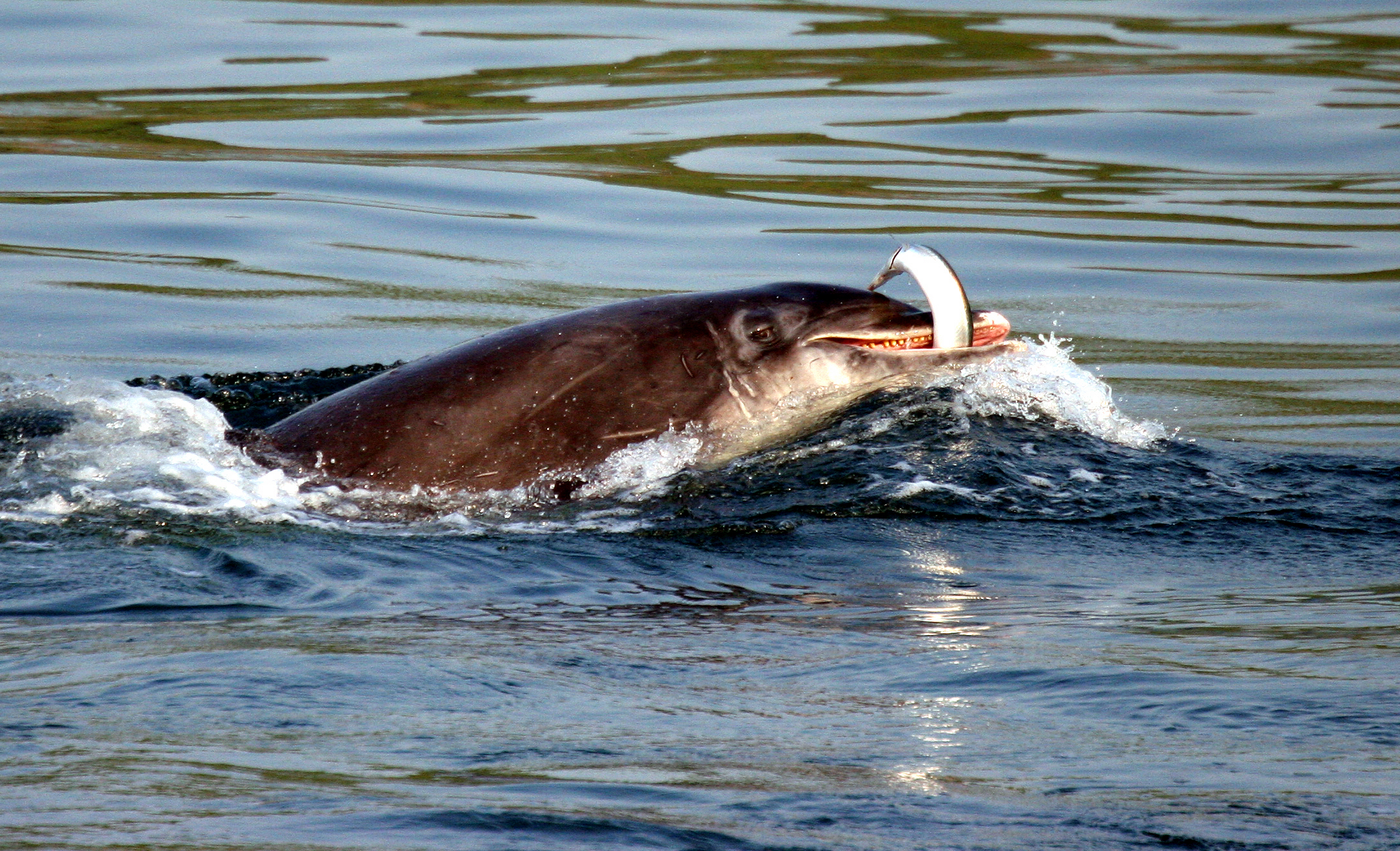 Figure 2: Grand dauphin (Tursiops truncatus) se nourrissant d’anguille, baie de Cardigan, Pays de Galles (avec la permission de PGH Evans)