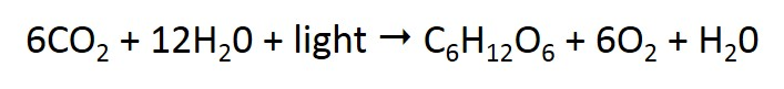 Figure a: Formula for the photosynthesis reaction.