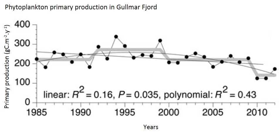 The study site on the Skagerrak coast is located at the entrance of Gullmar Fjord on the Swedish coast. The data set spans the period 1985–2012. APP showed a significant long-term trend over this period (Figure d), but with a tendency for increased rates between 1992 and 1996 (Tiselius et al., 2015).