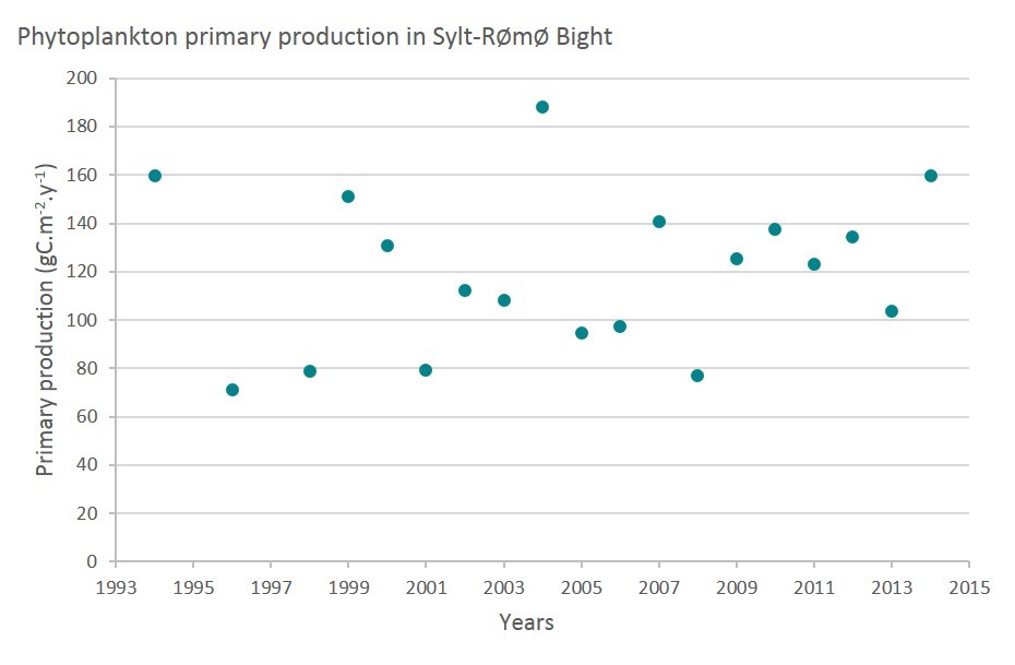 Figure e: Annual primary production at Sylt-Rømø Bight, Germany and Denmark.