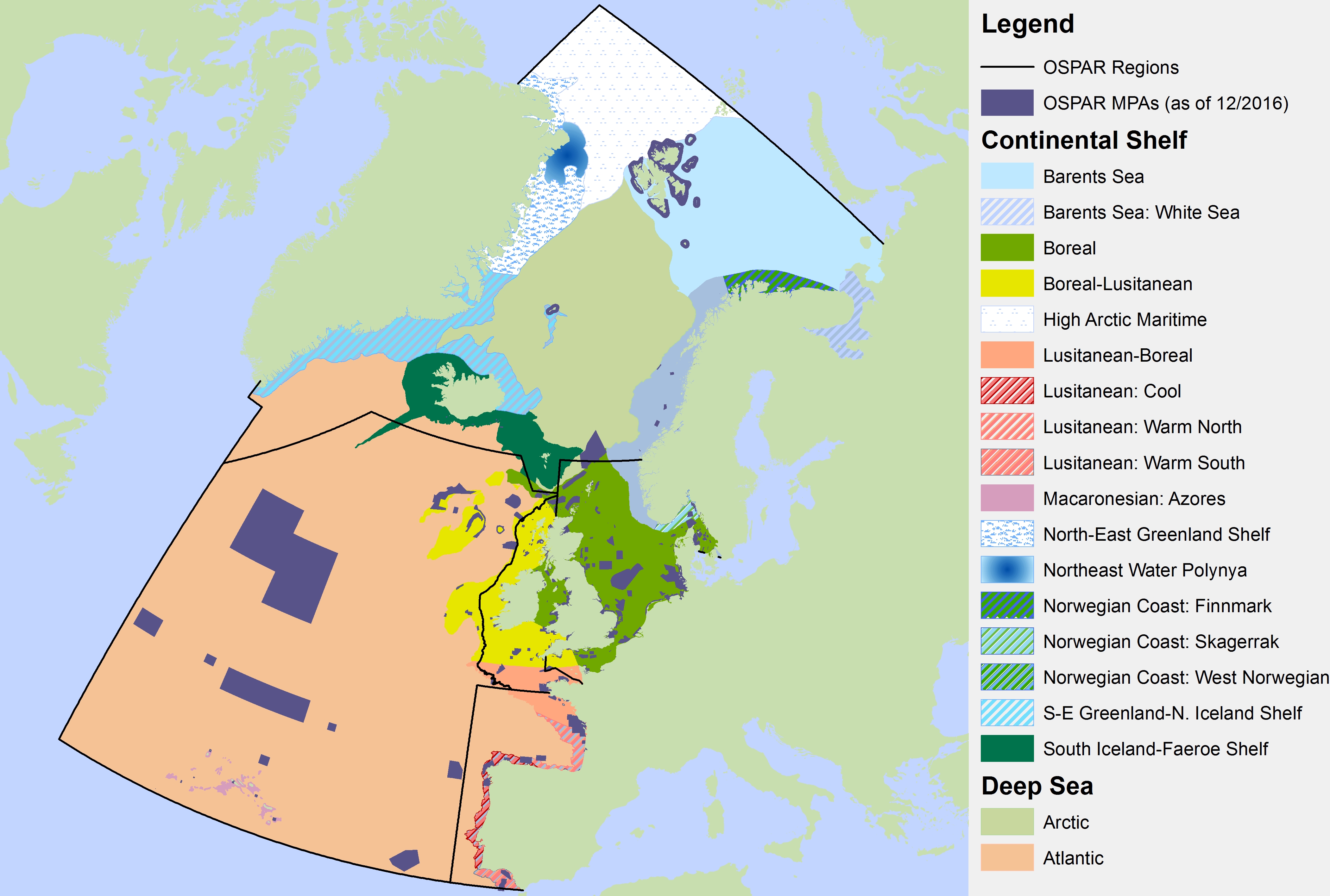 Figure a: Biogeographic areas and MPAs in the OSPAR Maritime Area