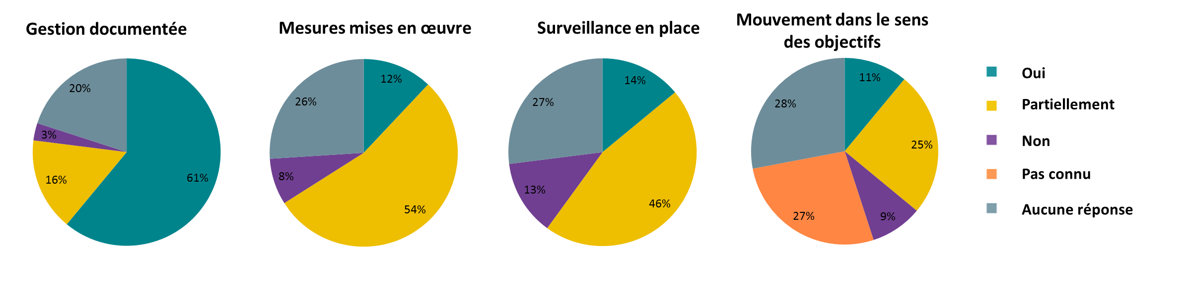 Les informations sur la gestion des AMP sont documentées publiquement pour 61% des AMP OSPAR, 16% de plus sont partiellement documentés (Figure 2) – cette situation est en grande partie due à la mise à jour des objectifs de conservation ou à la poursuite des travaux visant à déterminer les mesures de gestion par les Parties contractantes.