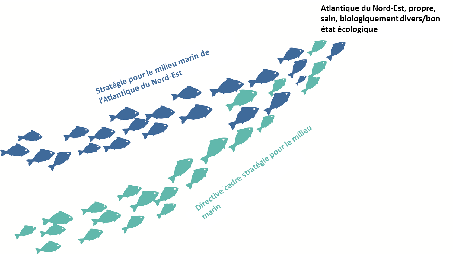 Cette démarche devrait permettre de parvenir à un Atlantique du Nord-Est propre, sain et biologiquement divers ainsi que de satisfaire aux exigences de la DCSMM s’agissant de parvenir au Bon état écologique.