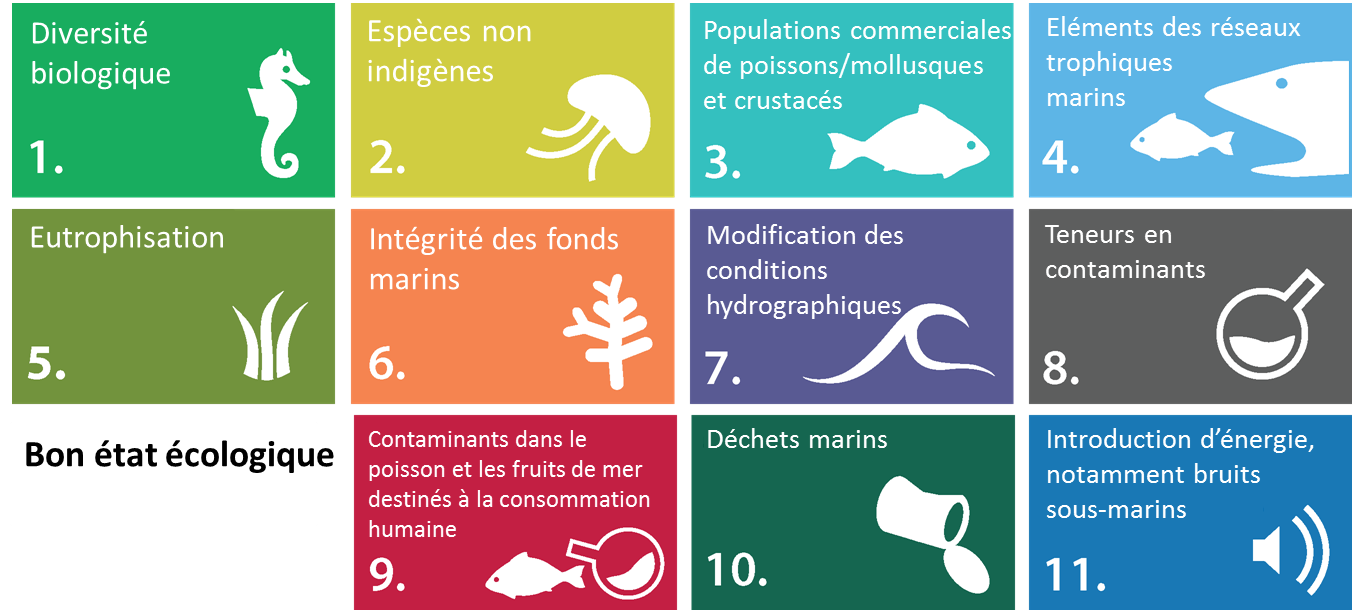 Figure 4: The 11 qualitative descriptors for determining good environmental status as presented in Directive 2008/56/EC of the European Parliament and the Council