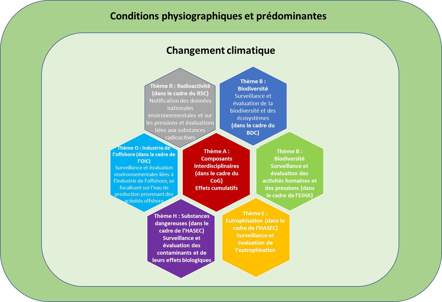 Figure 1. Domaines thématiques des travaux OSPAR fournissant des éléments pour l’évaluation des effets cumulatifs