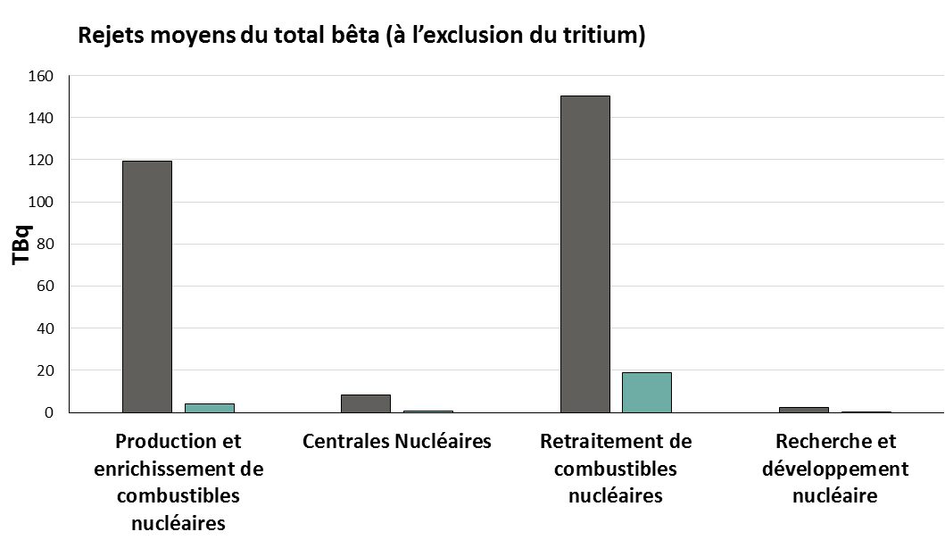 - Les rejets du total bêta (à l’exclusion du tritium) ont été divisés par 12 depuis la période de référence.