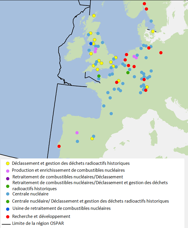 Figure 1 Installations nucléaires rejetant dans la zone maritime OSPAR