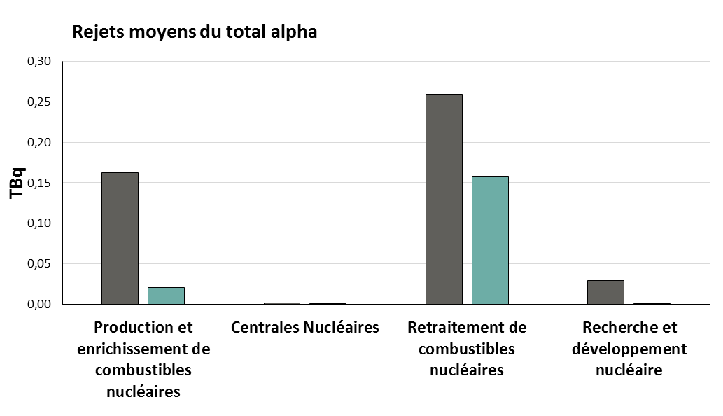 - Il y a eu une division par 2,5 des rejets du total alpha depuis la période de référence (1995-2001)
