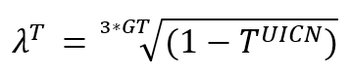 où GT = temps de génération et 𝑇𝑈I𝐶𝑁 = valeur seuil de l’UICN pour les espèces vulnérables (c’est-à-dire 0,3). Le seuil pour le taux de croissance d'une population varie d’une espèce à l’autre, et potentiellement d’une Région à l’autre, en raison des différences entre les temps de génération.